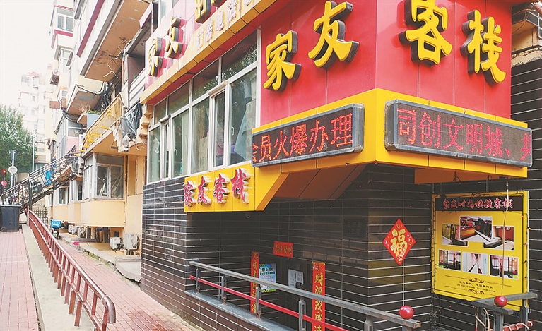 以前因为修下水管,物业曾在该旅店内刨过一次,给旅店带来了一定的损失。这次业主与物业决定,给旅店带来的损失,一单元的几户居民可以均摊,共同与旅店协商,但旅店坚决不同意。
