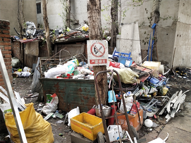 宽敞大院堆满废品 气味刺鼻 存安全隐患