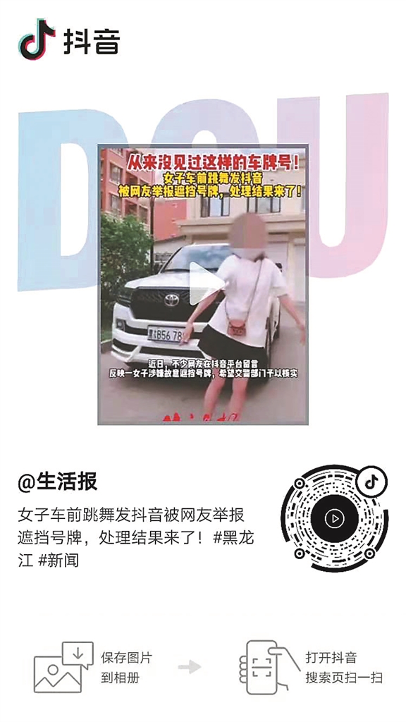 记者在视频中看到,一女子在车前跳舞,身后车辆遮挡号牌,不少网友在下面留言举报。随后,记者从黑河警方了解到,目前该女子被处以一次性扣满12分并处罚款的处理。