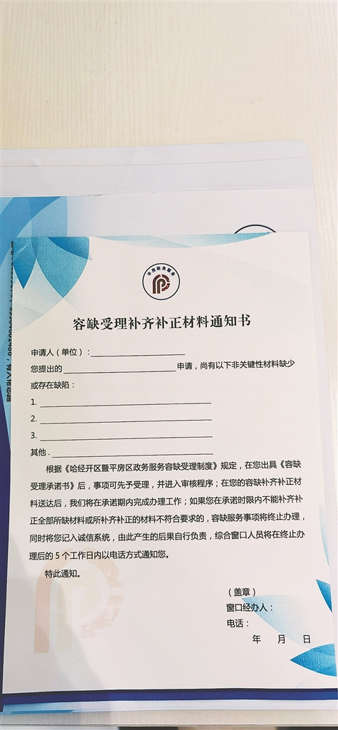 “免跑腿信封是哈经开区、平房区借鉴深圳经验在全省首推的一项容缺办理服务,企业设立、居民参保登记等228项服务都被纳入容缺办理范围,办理相关事项忘带材料,窗口工作人员就会递上免跑腿信封,准备好材料装入信封打一个电话就有人上门帮跑,帮送材料和收取证照均免费。”平房区营商环境建设监督局局长由明志介绍说。