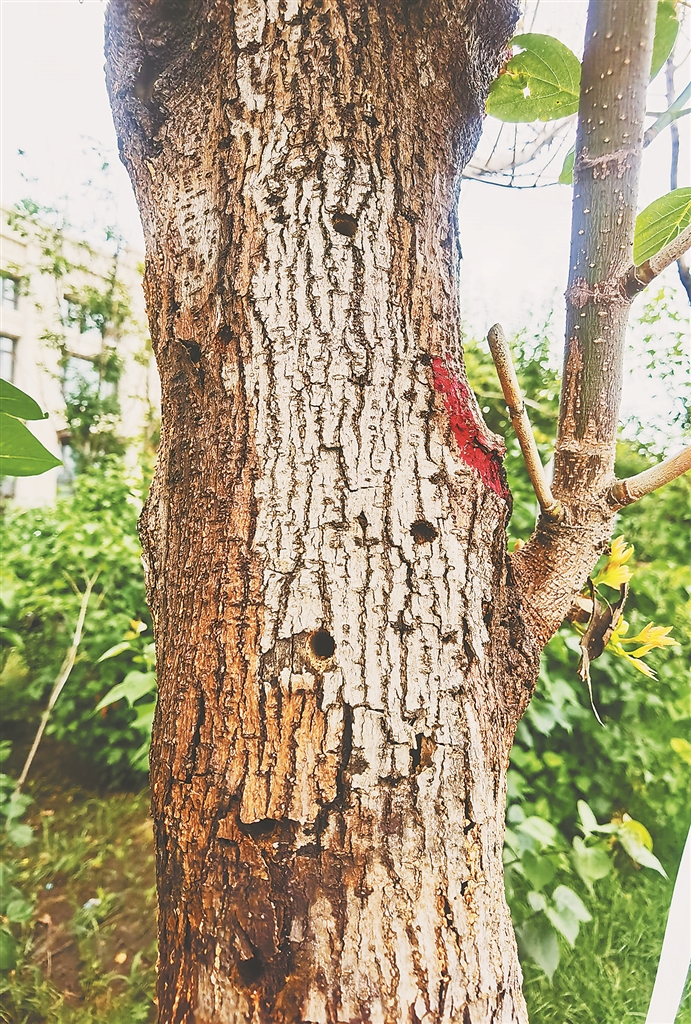 十余棵树有虫洞 系受光肩星天牛危害严重