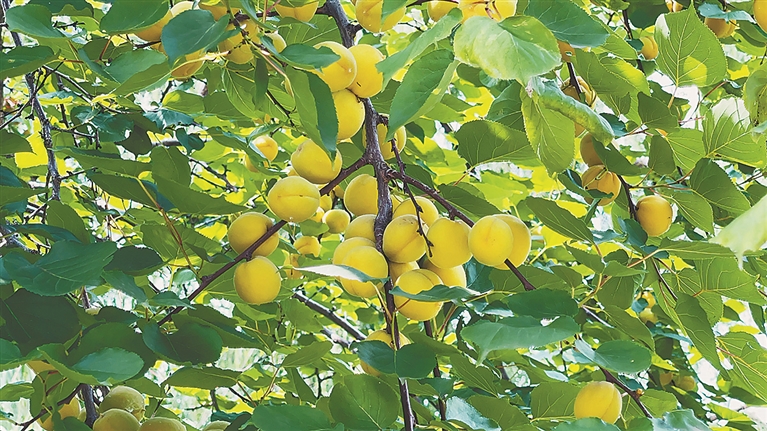 生活报讯 (记者李丹文/摄) 随着盛夏来临,哈尔滨市道外区古梨园内的山杏树等果树果实成熟,金灿灿的,令人赏心悦目。古梨园主任李营华表示,这些是城市绿化的树种,不是果园的树种,提醒市民观赏莫动手。