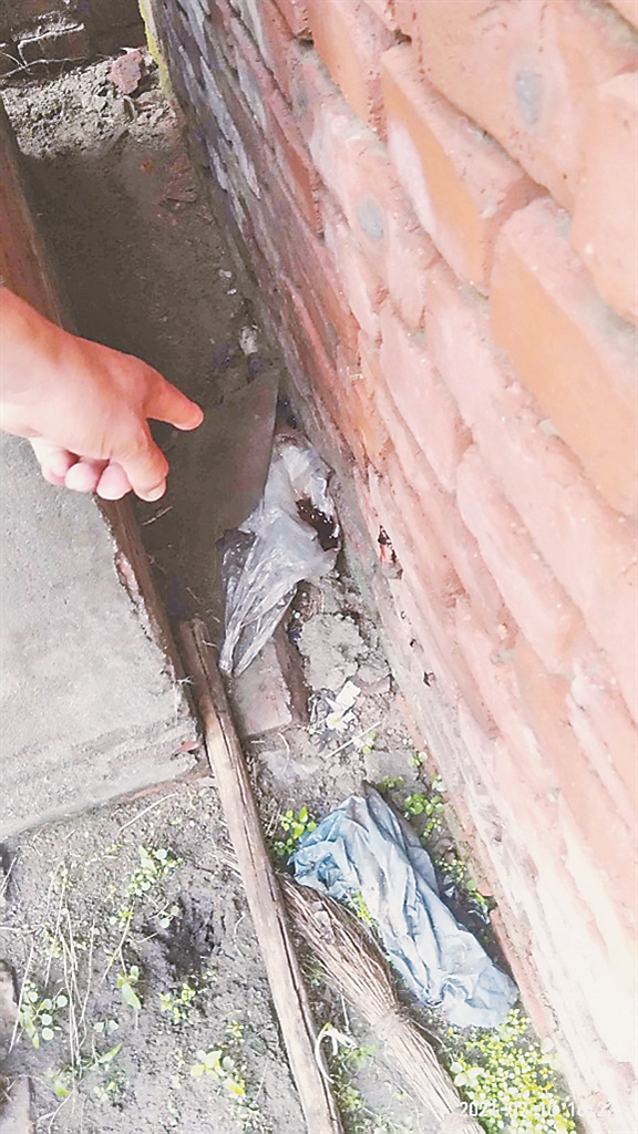 在现场,记者看到该处是厕所墙与砖墙的缝隙,多说能有10厘米,狼能钻进去说明是逃命时慌不择路,里面的狼血仍清晰可见。