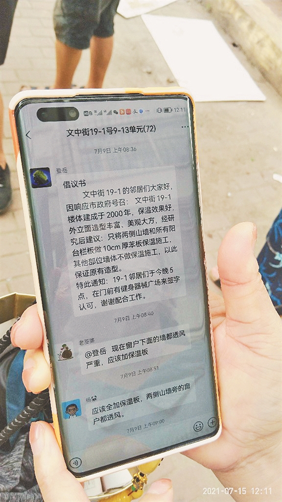 “只做山墙和阳台有啥用啊,那不是糊弄人吗?”收到这条信息后,居民微信群马上就炸锅了,居民们纷纷表达反对的态度。