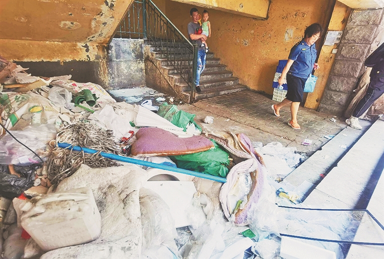 据居民杜女士介绍,这些建筑垃圾堆放在楼道口,每天回家必经之路,垃圾堆放有3个月了,影响居住环境,多次向物业反映,但均未得到解决。