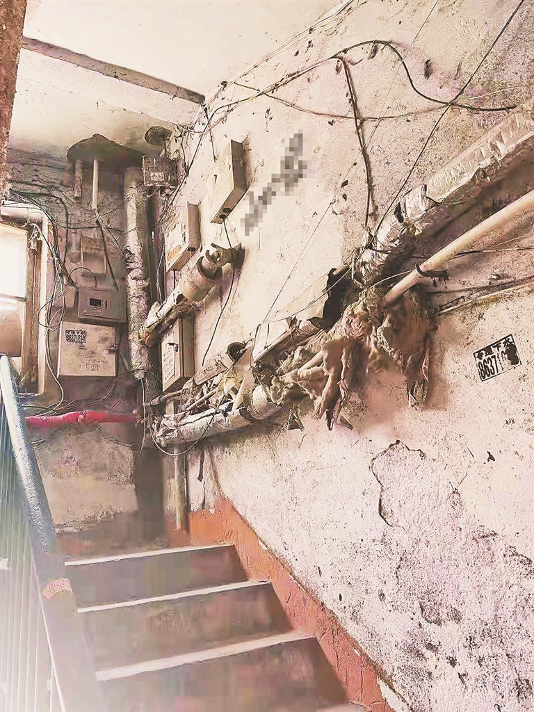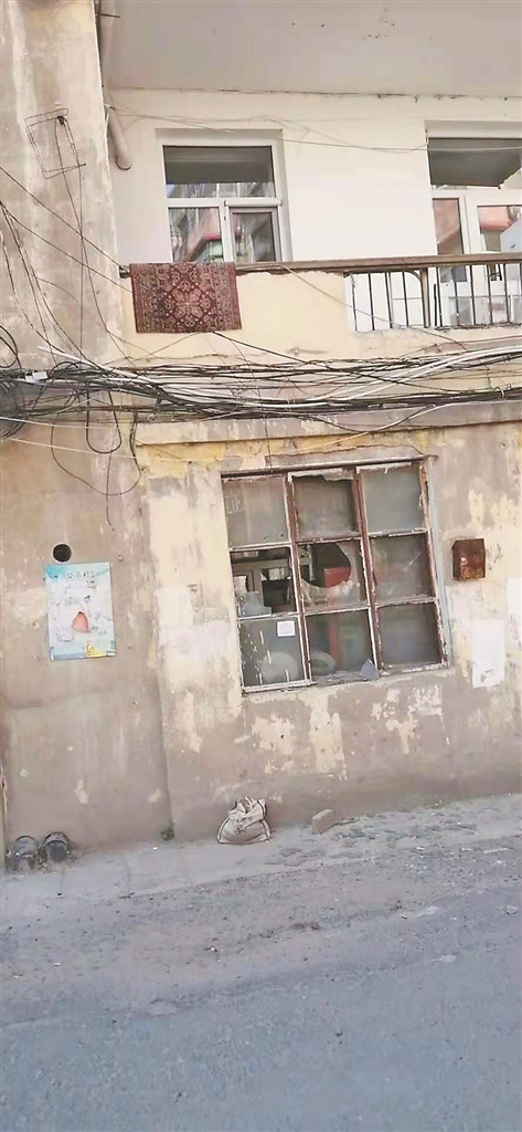 “我们小区最早建于1964年,其他几栋楼是上世纪八十年代建的。由于时间太久,楼体已年久失修。”居民孙女士聊起自家小区的“脏乱差”便打开了话匣子。“楼体漏风不说,自来水管线也老化了,有的居民家水管子是打的夹子,顶楼住户家严重漏水,棚顶都长毛了。一楼下水管道经常堵塞,楼道墙皮严重脱落,窗户破损,内外电线凌乱。小区路面坑洼不平,没有绿化,而且经常停电停水,这个月已经停电2次、停水2次。小区庭院无封闭、无照明、无绿化、无监控……”
