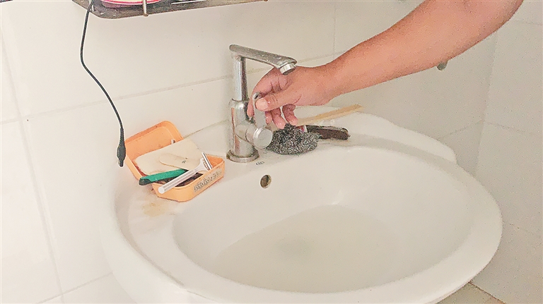 住在803的大爷向记者诉苦:我想冲凉只能挑用水不集中的凌晨3点,然而水流还是很小,原本10分钟就能完事,常常要花费40分钟。如不巧遇到停水,只能全身顶着泡沫等水来。“因为停水时间不确定,我和邻居们都产生焦虑感和不安全感了,每天都提心吊胆的。”随后,大爷打开厨房以及卫生间水龙头,只见水流十分小,不到1分钟便没了“声息”,彻底断了。