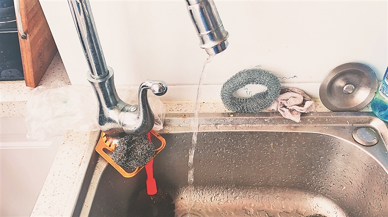 “这种情况从2019年开始,已经断断续续持续2年左右,家里常年用盆盆罐罐储存生活用水,洗菜或洗手后也将废水储存起来冲厕所,做中午饭需要从早开始准备储水,但有时临近中午都无法凑足午饭所需的水。”孟女士指着餐桌下堆着的两箱矿泉水说,现在天气炎热,不能储存太多的水,只好买矿泉水做饭。