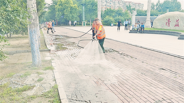 生活报讯 (记者李丹文/摄) 21日二伏首日,在哈尔滨的街路上,路人匆忙行走,并不禁感叹“太热了”。室外高温30余摄氏度,一线作业者却在兢兢业业地工作,汗水顺着额头“像拧开的水龙头,有点控制不住”。当日,记者体验环卫、园林等部门一线作业者工作3小时,走近他们的高温作业。