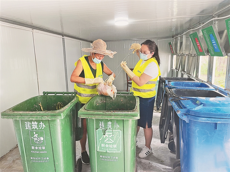 为了体验刘淑芬的工作,记者换上工作服,戴上塑胶手套,拿着镊子和她一起分拣起厨余垃圾。“这烂苹果可以放入厨余垃圾箱,这个是废纸,得挑出来……”刘淑芬一边指点记者,一边手疾眼快地快速分拣,不小心手一滑,垃圾袋内的垃圾残液迸溅,溅了记者和刘淑芬一身。“6点到9点收运,到分类点分类,天热味道重,中午休息洗两遍澡都去不掉。”戴着草帽的刘淑芬介绍着,闷热的小屋内已经是汗味、垃圾异味混杂。1个小时后,工作暂时告一段落,刘淑芬的胃里仍在“翻江倒海”,“都是工作嘛,也习惯了,就是希望能为城市做点啥,辛苦也值得。”对于工作的意义,刘淑芬朴实地说。