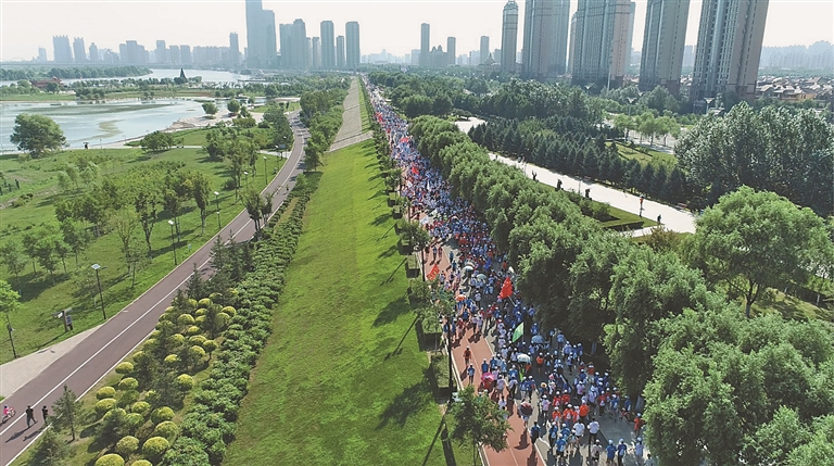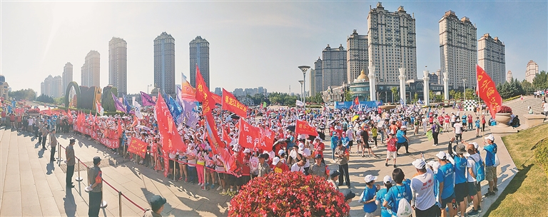生活报讯 (齐杨如意 记者吴哲) 由黑龙江日报报业集团主办的生活报运动季“浦发银行·2021第十届黑龙江徒步节”,24日清晨在美丽的哈尔滨市松花江畔激情开走。今年的徒步节依旧秉持着“健康、绿色、惊喜、旅游”的理念,在“徒步龙江,走出健康”运动健身主题的召唤下,万人徒步大军从音乐公园出发,途经友谊西路、防洪纪念塔、滨州铁路桥……最终到达太阳岛。长达11公里的徒步路线上,绵延数公里的行走大军无疑是这一天哈尔滨最耀眼的画卷。