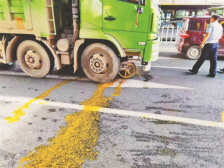 董先生介绍,这名女子骑着一辆电动车, 事发后电动车在翻斗车底。记者从救援人员处得到证实,骑车女子当场就没有了生命体征。