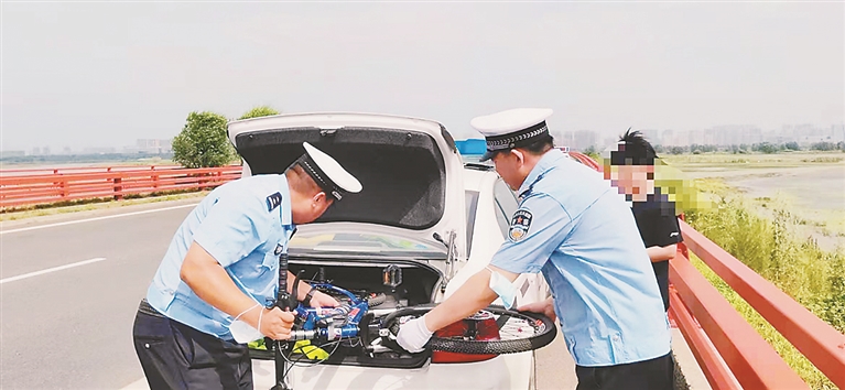 生活报讯 (记者何兴丽) 7月26日9时13分,省公安厅高管局哈双大队勤务五中队接局指挥中心派警,环城高速群力往松北路段有自行车在高速上骑行,中队长顾吉兴接警后带领民警曾鑫、辅警李晓峰驱车赶往该路段。