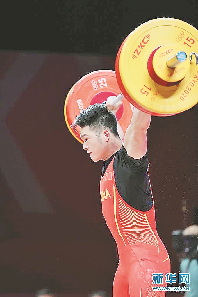 7月28日,中国选手石智勇夺得东京奥运会男子举重73公斤级冠军。 新华社记者 杨磊 摄