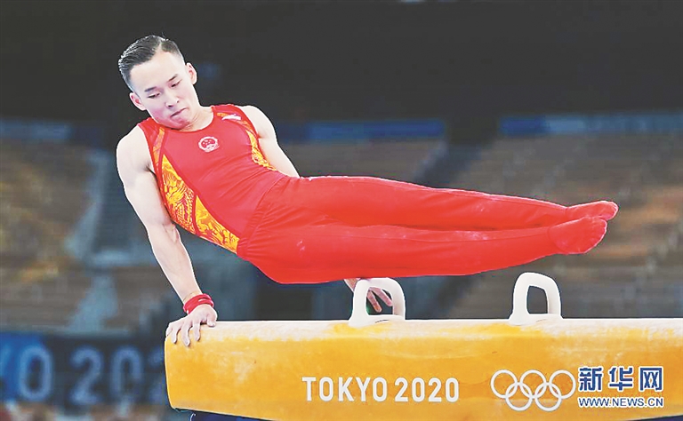 7月28日,在东京奥运会体操男子个人全能决赛中,中国选手肖若腾获亚军。 新华社记者 程敏 摄