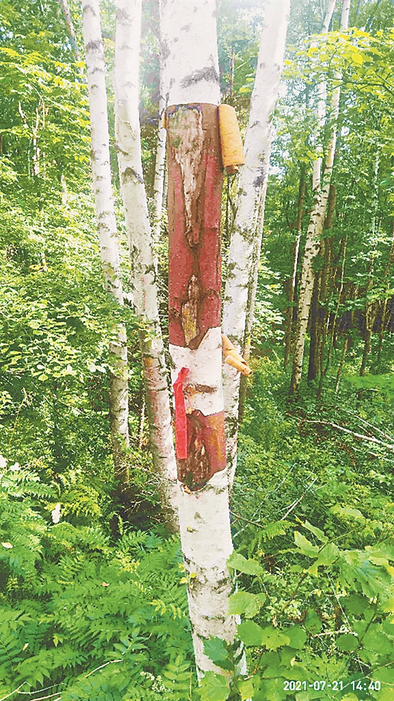 生活报讯 (记者王萌文/摄)近日,记者接到桃山国家森林公园游客的反映,在当地发现多处白桦树树皮被扒。