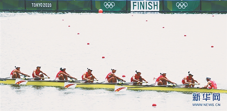 30日,东京奥运会赛艇女子八人单桨有舵手决赛在日本东京海之森水上竞技场举行,中国队获得季军。 新华社记者 杜潇逸 摄