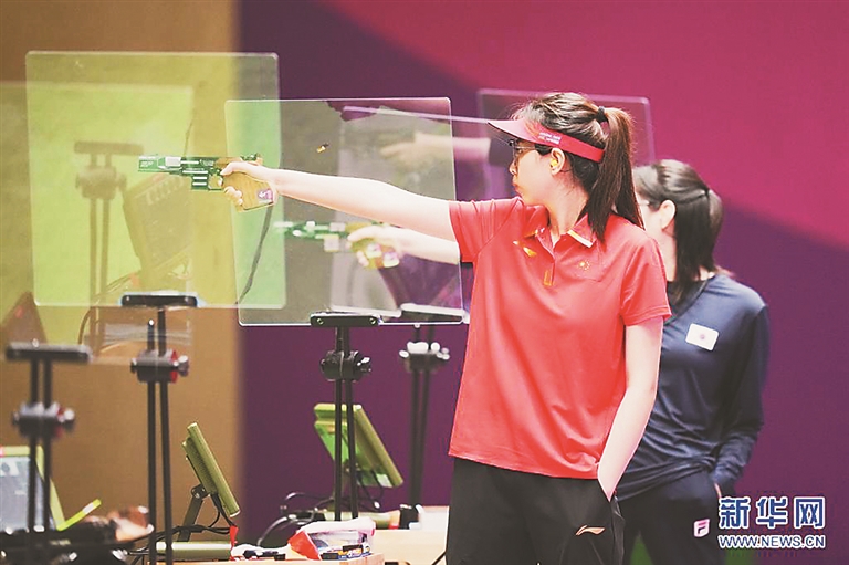 30日,东京奥运会举行射击女子25米手枪决赛,中国选手肖嘉芮萱获得铜牌。 新华社记者 鞠焕宗 摄