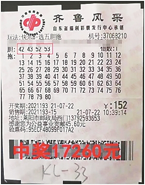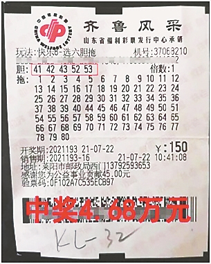 近日,山东烟台彩友用“网红玩法”一举揽得快乐8奖金64060元!这位彩友一下买了两张胆拖票,一张是“选五四胆全拖”,中奖17260元;一张是“选六五胆全拖”,中奖46800元,合计中奖64060元!