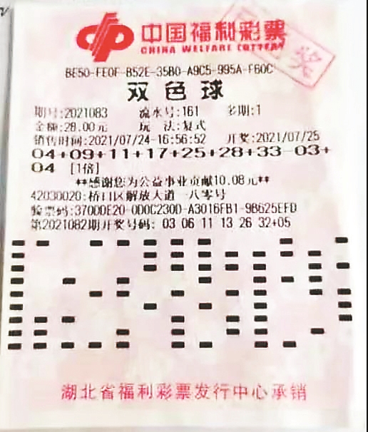 7月25日晚,福彩双色球第2021083期开奖。湖北武汉硚口一彩民,凭借一张7+2的复式票,获得一等奖一注、二等奖一注,总奖金521万元。