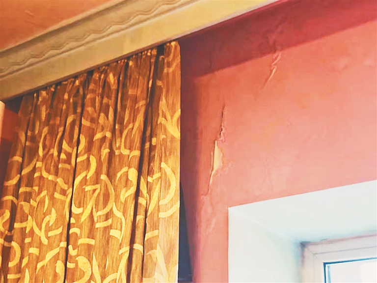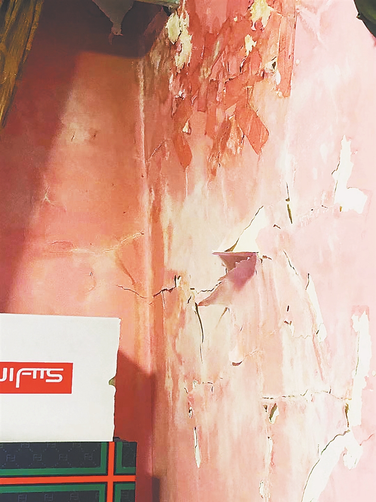 后来施工方对房顶进行了修补,屋里不漏水了,但是开始墙皮脱落、发霉长毛。“我女儿说,墙面长出了毛,有粉色的、绿色的、蓝色的。”王女士也联系过施工方并登记了信息,却迟迟无果,王女士最后只好自己出资把墙面重新粉刷了一遍。