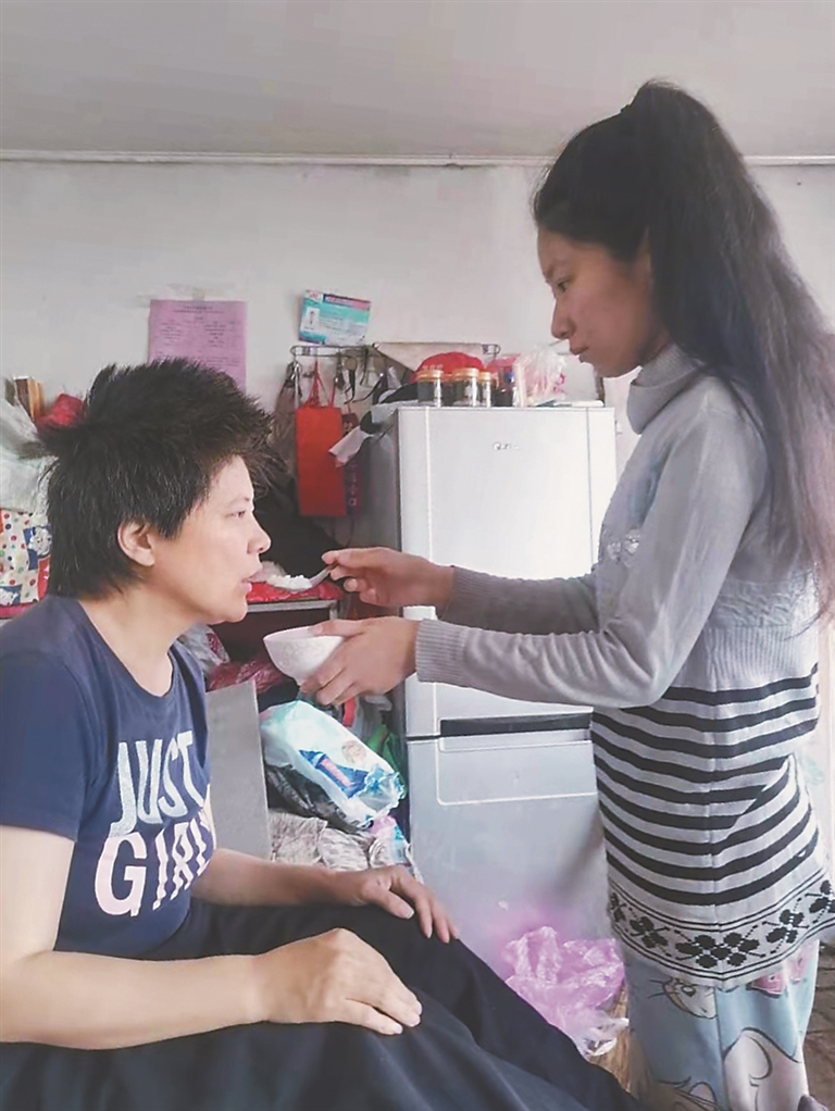 蔚福甜出生在五大连池市的一个农村家庭,家里还有一个年长八岁的姐姐。自小,蔚福甜的母亲就患有精神类疾病,无自理能力,家庭的重担都压在父亲蔚春海的肩上。“我只能在家一边种地一边照顾妻子,但光靠种地根本承担不起两个女儿的学费,所以我有时候去做零工,有一次去扛袋子,200多斤,身体实在扛不住,一条腿拉伤了,还是坚持干,但是后来两条腿都不行了,就没办法干了。”蔚春海回忆起当时的场景,觉得有些得不偿失。一个月前,蔚春海出车祸躺在医院的病床上。蔚福甜告诉记者,她现在已经是大人了,应该承担起家里的重担,在父亲住院的日子里,她负责照料母亲,“喂药、喂饭,有时午夜学习间隙,我再看看母亲,是不是没有盖好被子。”
