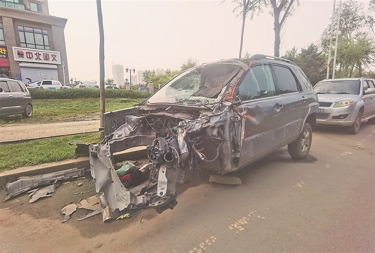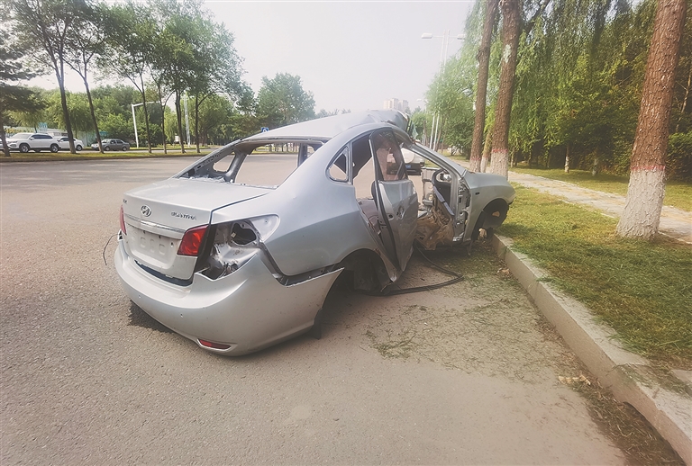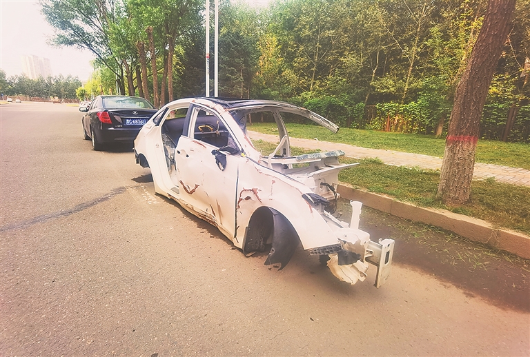 生活报讯 (记者肖劲彪文/摄) 日前,有市民向本报记者反映,哈尔滨市松北区浦阳路两侧停放了多台报废车壳,影响车辆正常通行,希望有关部门尽快清走。