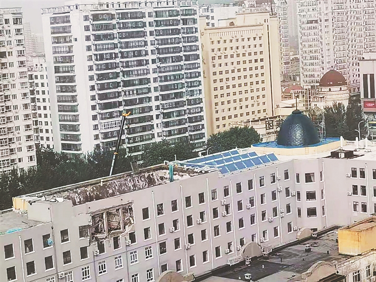 生活报讯 (记者肖劲彪文/摄) 记者从哈尔滨市香坊区应急管理局获悉,8日15时10分许,和兴路6号的嘉天投资有限公司七楼(顶层)发生坍塌,导致11人被困。