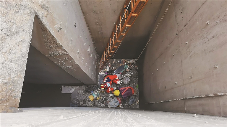 救援人员到达现场看到,一名工人掉入楼体外采光井内,井口长3.5米、宽2米、深约6米。被困人员意识清醒,初步判定腰部摔伤,由于剧痛无法自行移动。指挥员立即组织救援,首先让一名先遣队员通过9米拉梯下到采光井内,仔细询问并检查被困人员伤情后,第二名救援人员携带多功能担架及绳索下至采光井内。为被困人员佩戴好头盔做好头部防护并使用护腰将其腰部固定后,两名救援人员一同将被困人员抬放到多功能担架上,使用安全钩及绳索固定牢固,最终将被困人员救出采光井。救援人员小心缓慢将其抬至120救护车,移交医护人员送往医院进行救治。