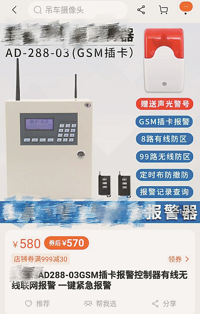 记者注意了一下,这种报警器是由南方的某厂家生产的,型号是AD288-03。根据当地幼儿园负责人的反映,记者在某宝销售平台搜索了一下,发现这种报警器售价仅为580元。