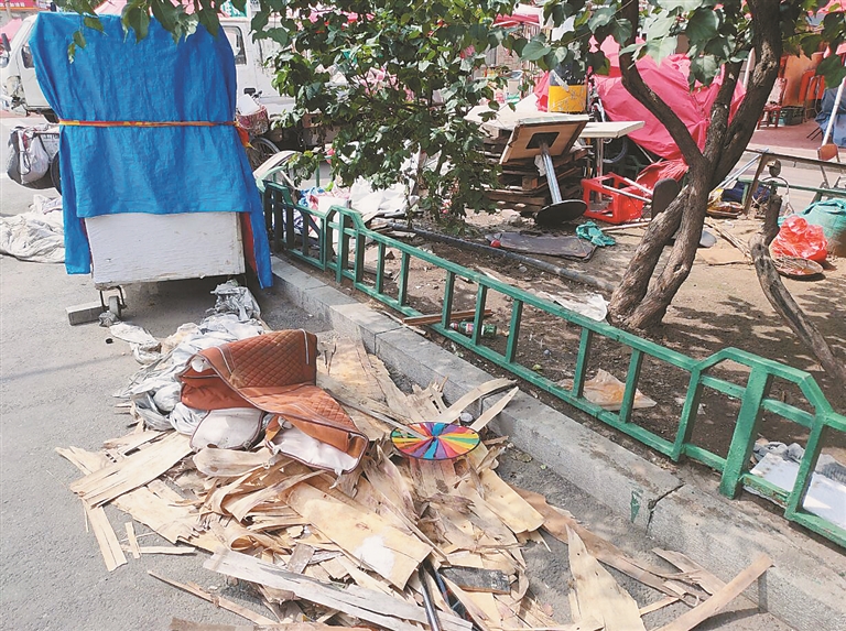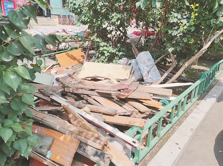 陈先生说:“这绿地本来挺好的,现在却成了储物间和垃圾场,啥都往里扔。这堆破板子堆在这都挺长时间了,不能把绿化带这么祸害呀。”