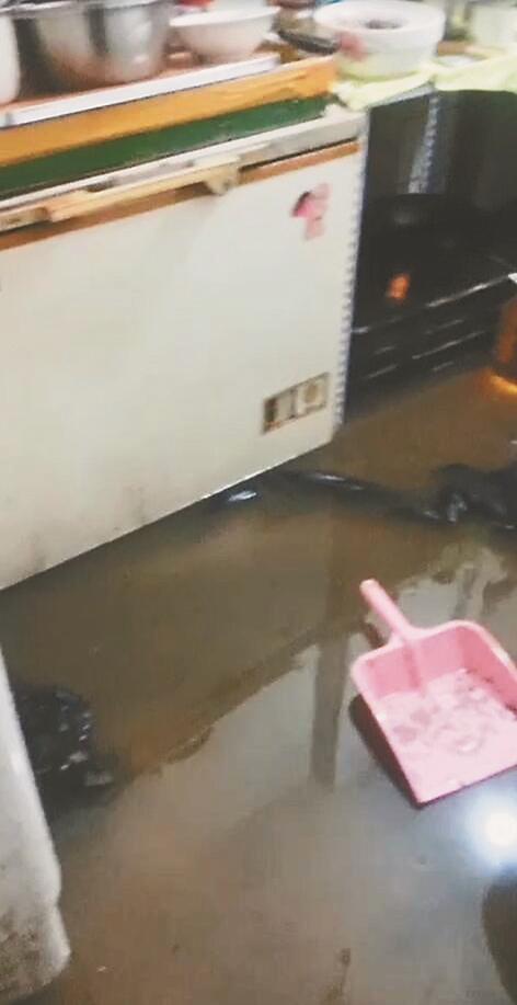 宋先生住在东升家园162号楼3单元地下室,他说:“1日那天晚上外面下大雨,我家屋里直接变池塘了。”宋先生拿出1日晚拍摄的视频,记者看到,由于下水返水,屋里的水已经没过了脚踝,屋里的人用衣服、棉被把所有的下水口堵上,水还是不停地往屋里返。