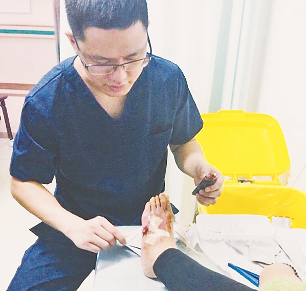 “糖尿病足部病变是周围神经病变(包括自主神经病变)、微血管病变、大血管病变和不良的卫生习惯等诸多因素之间复杂的相互作用所导致的。一旦发病,由于其治疗复杂、困难大,会面临截肢等后果。但是,只要患者能够积极处理的话,大多数的截肢也是可以被避免的。”据血管外科主任黄任平介绍。