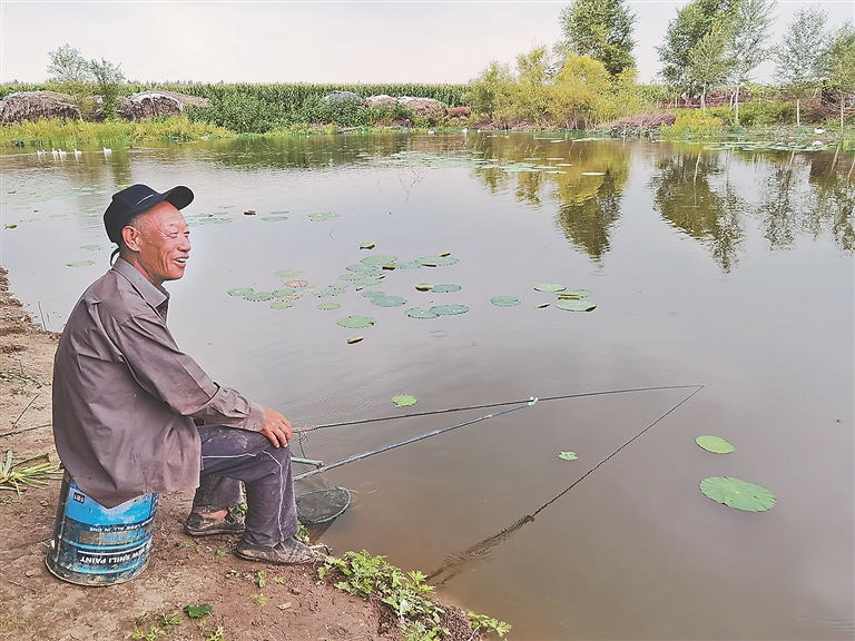 在张木匠屯改造后的荷塘里,记者遇到了正在钓鱼的村民赵贵军。据赵大爷讲,“以前这个臭水沟村民都绕着走,现在政府将这里改造成荷花池了,水也变清了,里面还可以养鱼,我们没事时,就来这里看看景、钓钓鱼。”