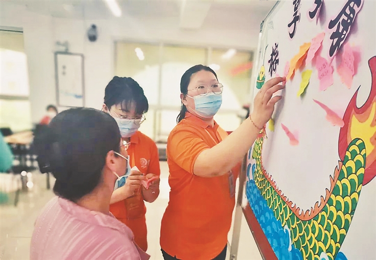 道里区兆麟街道社工站建立“五社联动”机制,重点为社区老年人提供健康服务、能力评估、社会支持网络建设等服务。人员配置模式为“1+1+2+X”,即设1名站长、1名社工督导、2名驻站社工加上若干兼职社工、实习社工、社区工作人员、志愿者等,较好地解决了基层民政服务人员数量不足和专业性不强的问题。