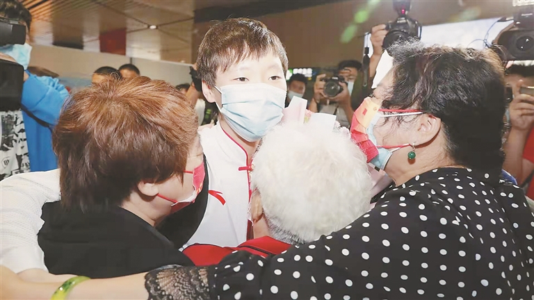 生活报讯 (记者梁晨) 在不久前结束的东京奥运会乒乓球女子团体决赛中,我省运动员王曼昱携手陈梦、孙颖莎夺得乒乓球女子团体冠军,为中国代表团收获本届奥运会的第34枚金牌,这也是王曼昱首次站在奥运会的领奖台上。30日20时,结束隔离的王曼昱乘飞机回到家乡哈尔滨。