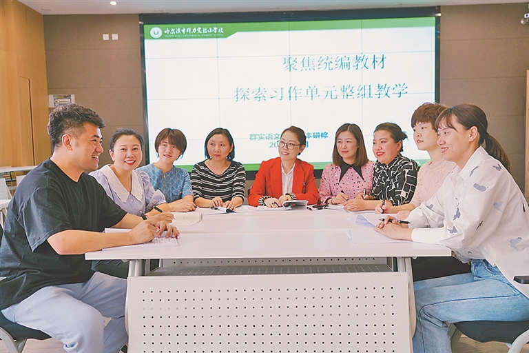 每学期语文团队都会依据学校制定的整体培训计划,自主选择研修的主题和内容,通过自主阅读、专家引领 、定向培训、主题研修、青年教师序列化培训、以赛促研等多元研修方式,拓宽了教师发展的路径。