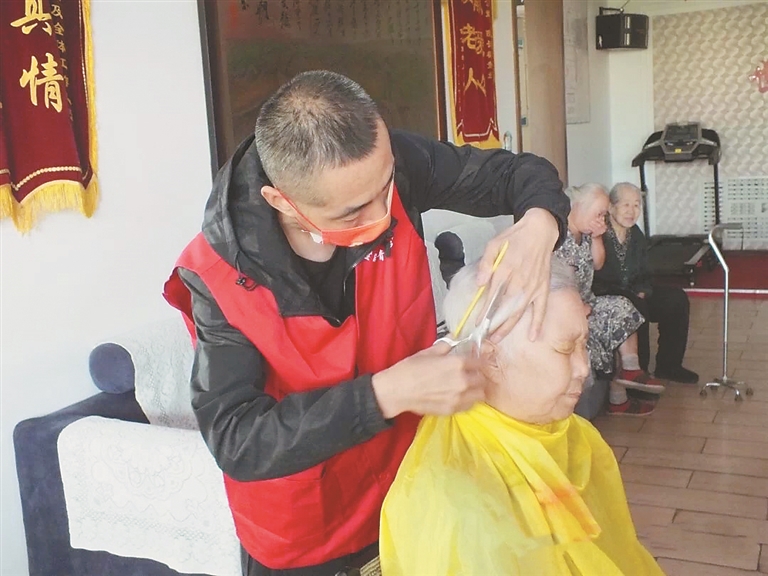 生活报讯 (见习记者刘维娜 记者 李丹文/摄) 敬老爱老是中华民族的传统美德,在中秋佳节来临之际,生活报青年志愿者团队组织志愿者代表,到敬老院慰问,为老人理发,送水果,并送去节日的祝福。