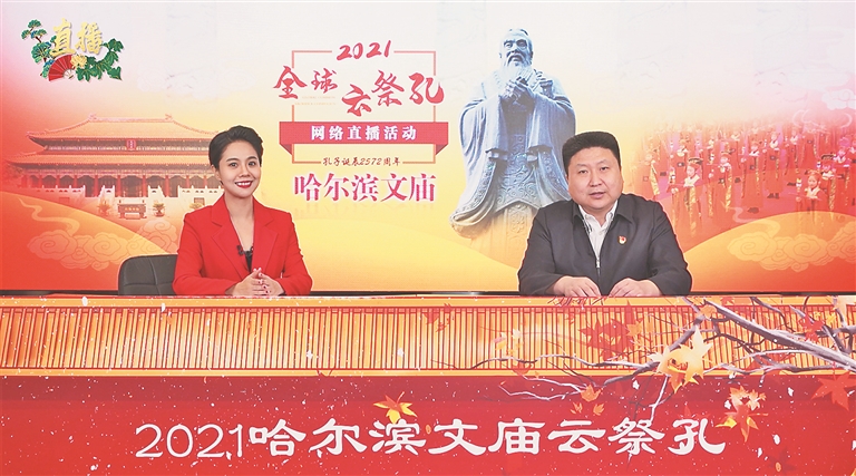 2021年9月28日,是孔子诞辰2572年纪念日。当天9时18分,黑龙江省民族博物馆(哈尔滨文庙)采取线上直播的形式参与到“全球云祭孔”活动中。并邀请专家及历年祭孔工作人员做客演播室,结合以往精彩画面,细致解读公祭孔子大典,缅怀至圣先师。