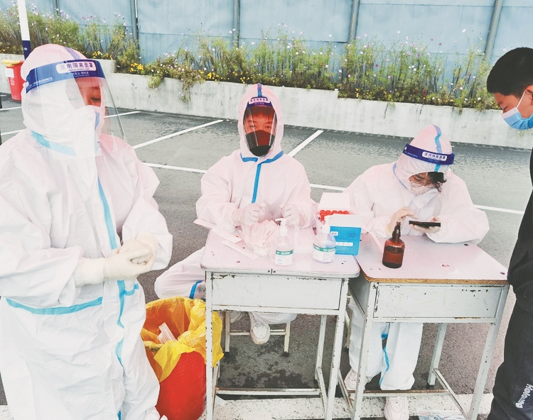 9月21日,他再次收拾好行装奔赴抗疫前线——幸福镇安居社区。他负责维护现场秩序,扫码测温,帮助完成信息登记。