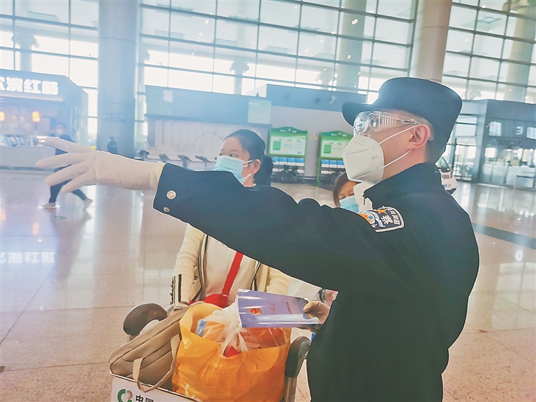 “我去哪儿取票啊”“我的健康码为什么不显示啊”……面对旅客的乘机疑惑,张宇航总是细致耐心地回应。每天18个小时奔忙,直至凌晨航班结束,他才可以真正放松一会儿,但马上,又要开始准备第二天的防疫装备、补充各类消杀物品。