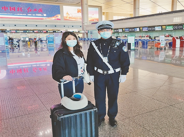 登机时间临近,重要证件却在50公里之外,女子情绪明显急躁起来。黄淞新一边安抚其情绪,一边通知市内办公民警驱车取回手包送往机场。旅客顺利登上飞机。此刻,距离登机结束仅剩下十分钟。当晚,旅客通过电话对机场民警的热心相助表示感谢。