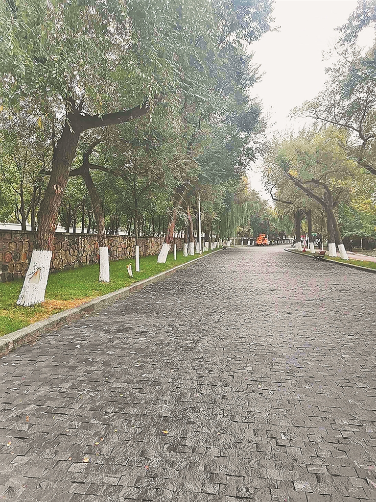 目前,公园采取栽植多年生委陵菜的方式,已完成6000平方米裸土地改造,既经济又美观;完成600米乔木金叶榆挡墙栽植,可有效防止游人随意穿行绿荫草坪和车行道,消除潜在安全隐患;公园还在广场和步行街周边增设休息座椅30个,及时修补破损座椅20个。