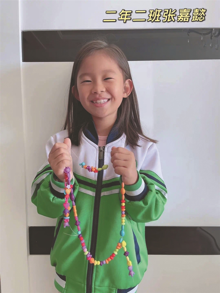 10月5日,新区花园的同学们一起动手制作起了朝珠。