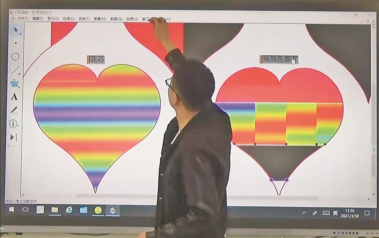 有一回,他在网上看到了一个沙画表演,擅长信息技术的他深受启发,心想:“既然沙画可以展现一个让人记忆深刻的感人故事,那么画板也可以,我可以用讲故事的方式,让数学变得更有意思。”杨华龙发现,当时学生们最大的问题是,一些较难的知识点记不住,如果能把知识点从文字变成图像,记忆效率就会提高,最理想的效果是“记住一幅图,就相当于记住一个知识点”。
