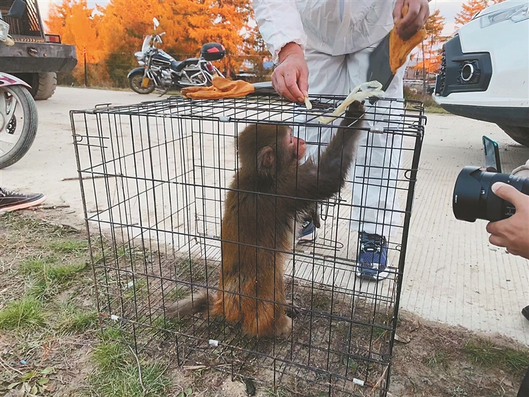 生活报讯 (韩宗信 邱焕军 记者栾德谦) 7日,黑河边境警方成功救助一只猕猴。