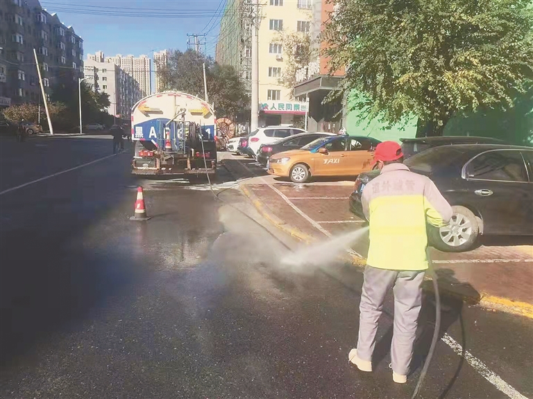 道外区城管局采取“人工清扫,机械清运”的作业方式,将全天候“伴随式”保洁模式深入到各主次街路、背街背巷。特别是各秋菜销售点位,在原有基础上,各点位增派10余人,轮班上岗,不间断对路面进行清扫,增派垃圾运输车,增加垃圾运输频次,最大限度减少“两叶”滞留时间。加强街路水冲、洗扫力度,彻底消除街路上的泥沙、尘土。