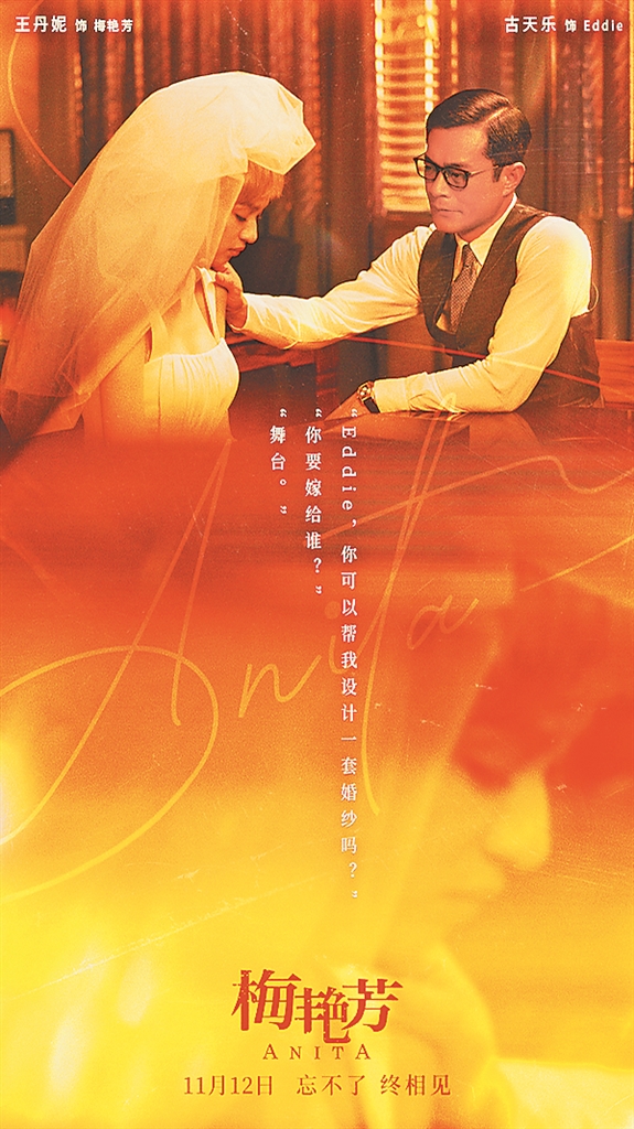 预告中,王丹妮饰演的梅艳芳身披婚纱“嫁”给观众、“嫁”给舞台,在连绵的掌声和欢呼声中,她带着万千观众的爱意谢幕转身。据悉,此次古天乐饰演的是梅艳芳的挚友Eddie。在看见她试穿婚纱的样子时,Eddie眼中充满了不舍与无奈。林家栋和杨千嬅饰演华星唱片高层,他们从梅艳芳出道时便相伴左右,关系早已不局限于事业上的伙伴。“如果有下辈子,你们都要继续这么疼我”,梅艳芳对他们之间的感情除了不舍,还有无尽的珍视与感念。