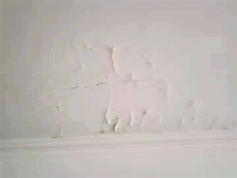 “旧改前我家屋顶只是有漏水的问题,旧改后又出现了屋顶墙体开裂的现象,经常有墙皮往下掉。我认为是施工方野蛮施工所致,刚做完楼顶防水后就采用吊篮作业,由于重量极大的吊篮压在楼顶,才导致我家出现这样的问题。”王先生表示。记者看到业主屋顶墙体的裂缝是随着吊篮方向开裂的,部分位置出现了起皮脱落现象。
