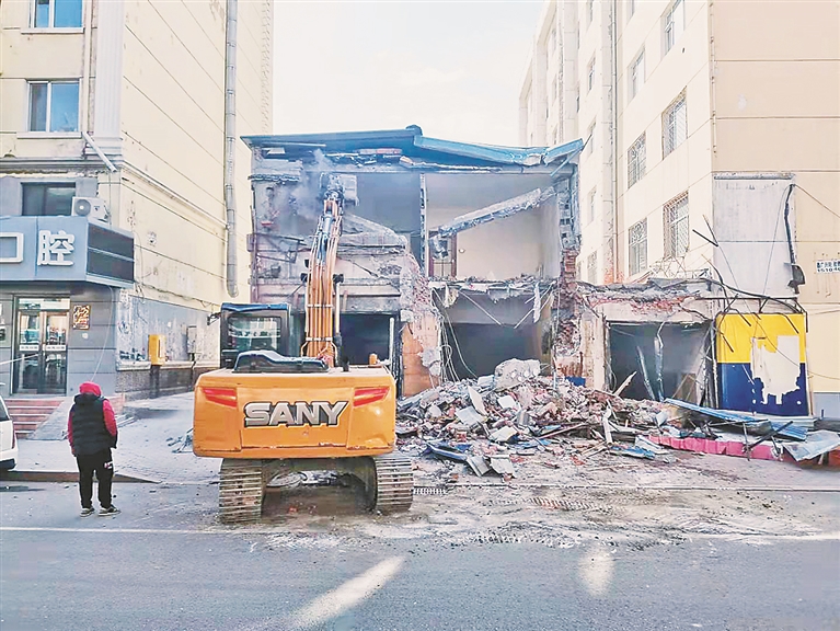 该违建位于黄河路主干道路上,紧邻宣庆小区居民楼,之前用于开设汽车修理厂。该违建产生环境污染和噪音污染,不仅影响市容市貌,也影响周边居民的日常生活,周边住户意见颇大。10月15日上午,南岗区综合行政执法局联合街道办事处、公安、公证等部门,组织执法人员、车辆,配合专业拆除队伍,对该建筑进行了依法拆除。